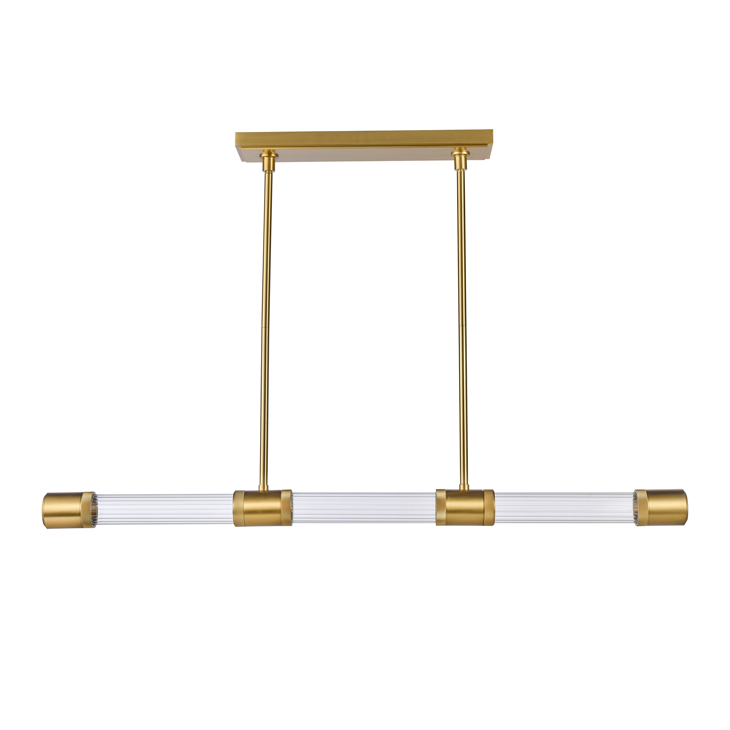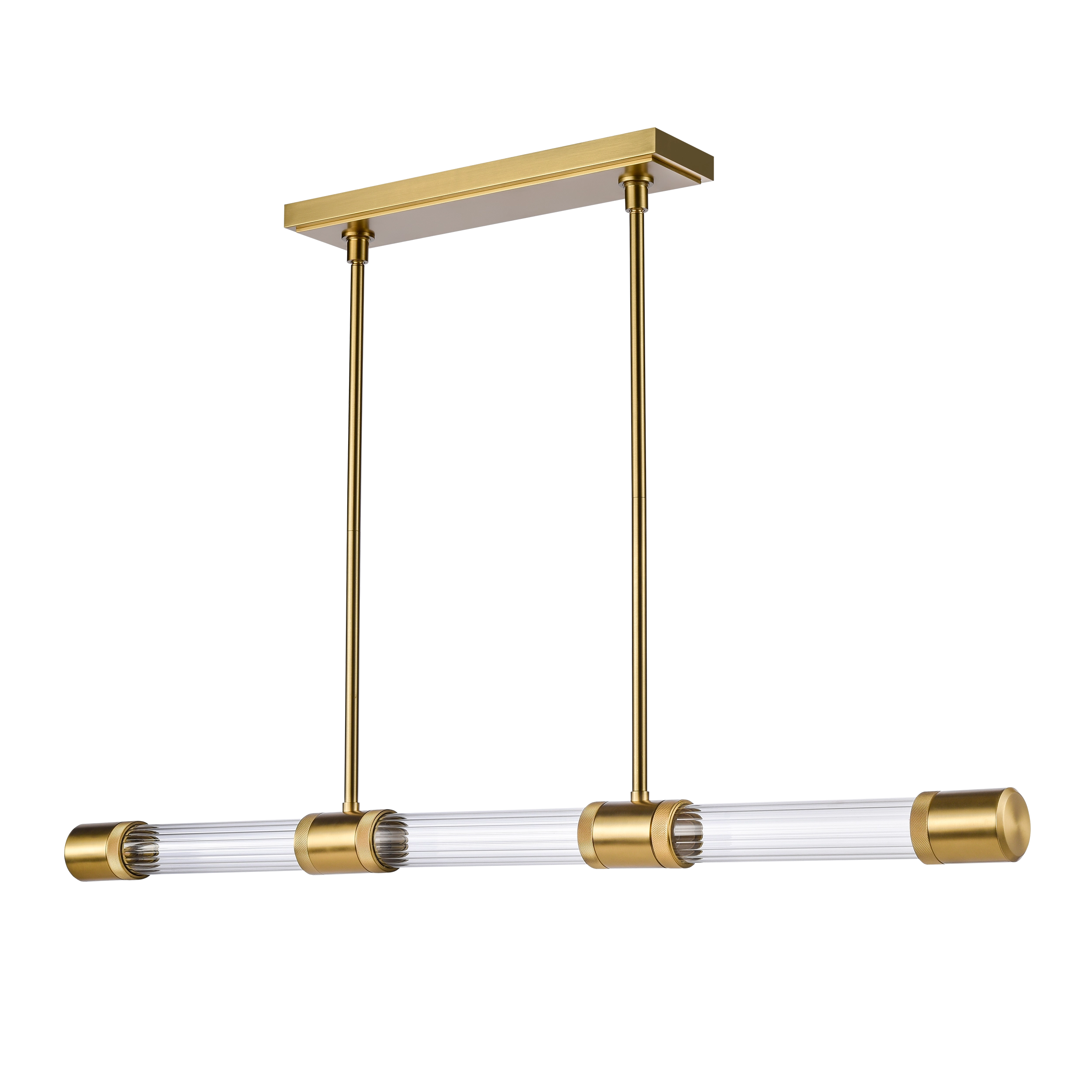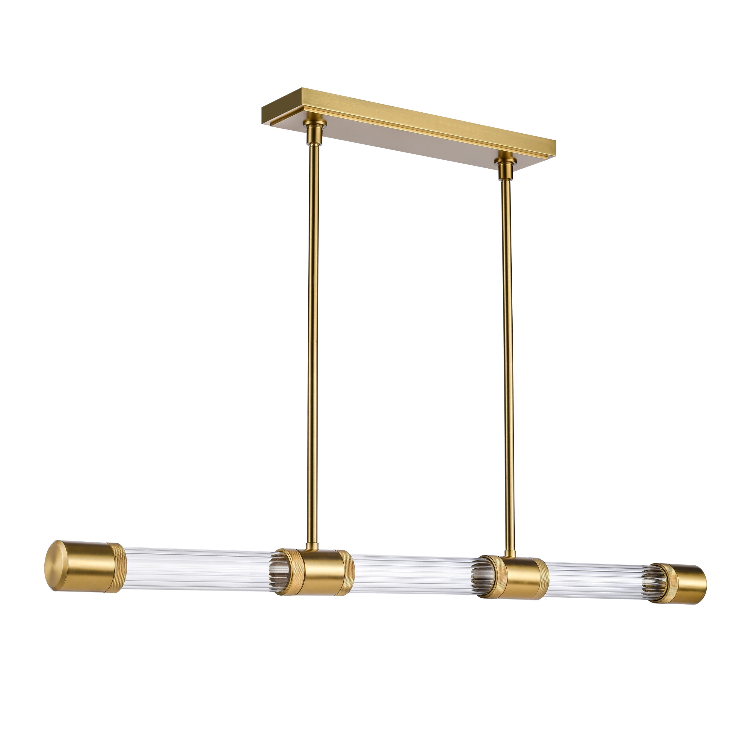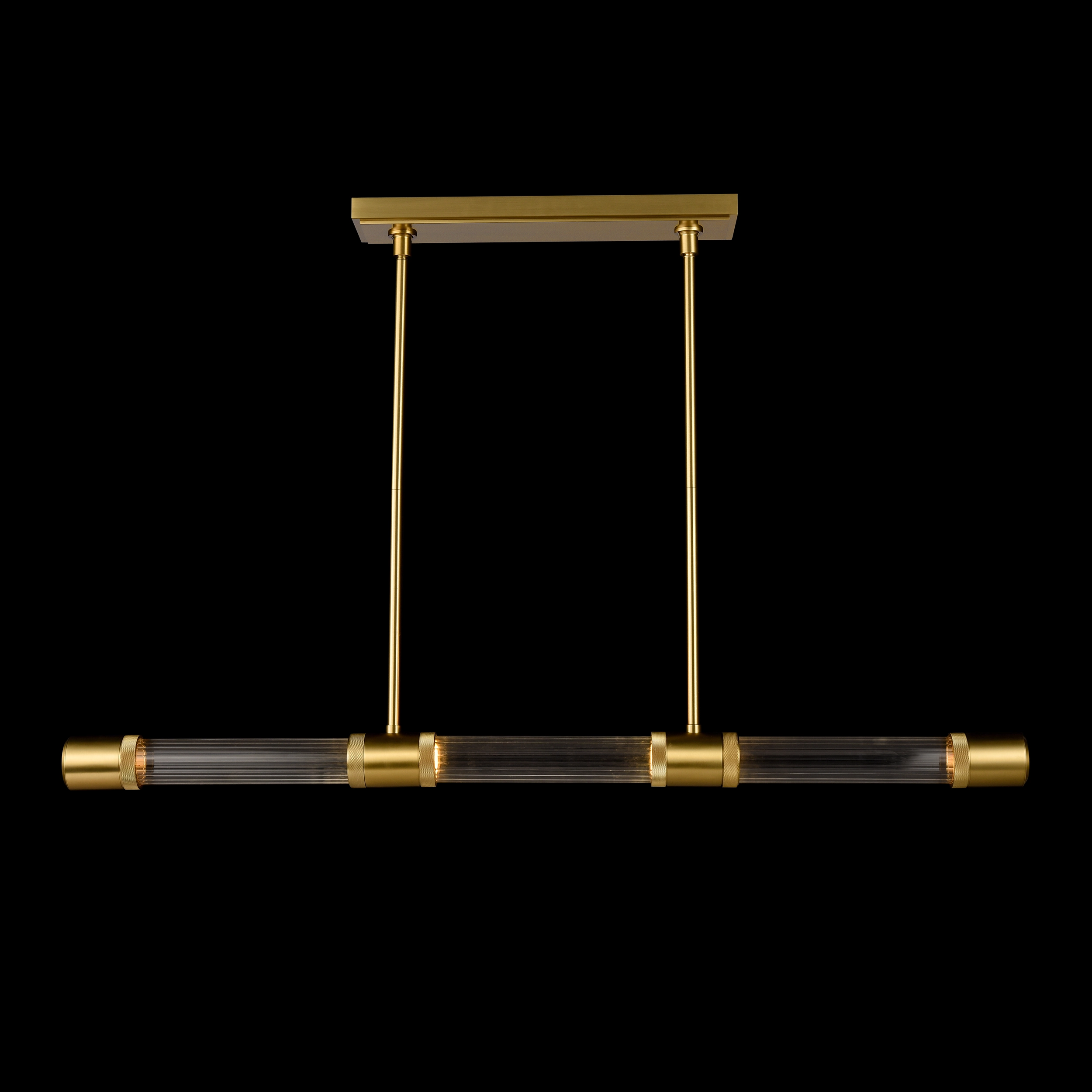 LED 3CCT 48" Sleek Linear Pendant Light, Clear Fluted Glass Shades and Our Premium Aged Brass Finish with Detailed Diamond Knurled Metal Bands. Integrated Replaceable LED with 3CCT 3000K, 3500K and 4000K.