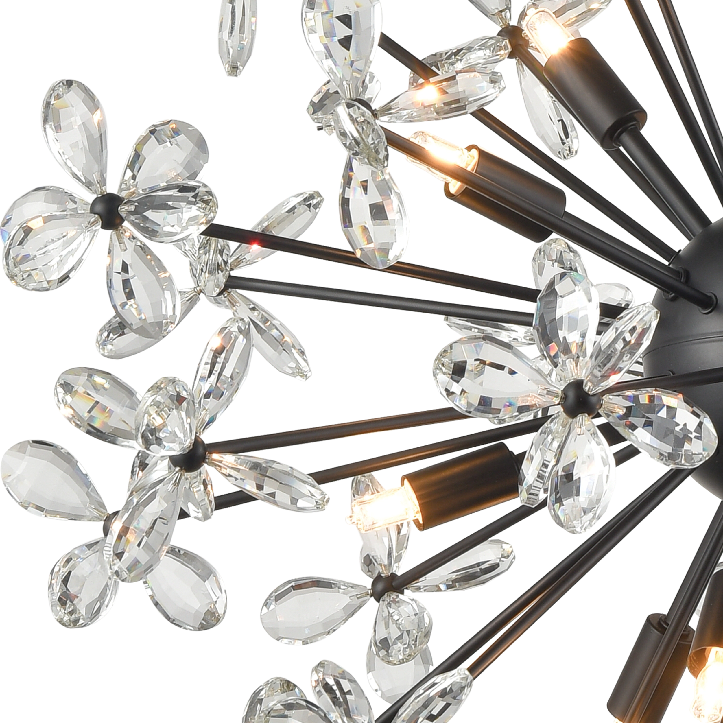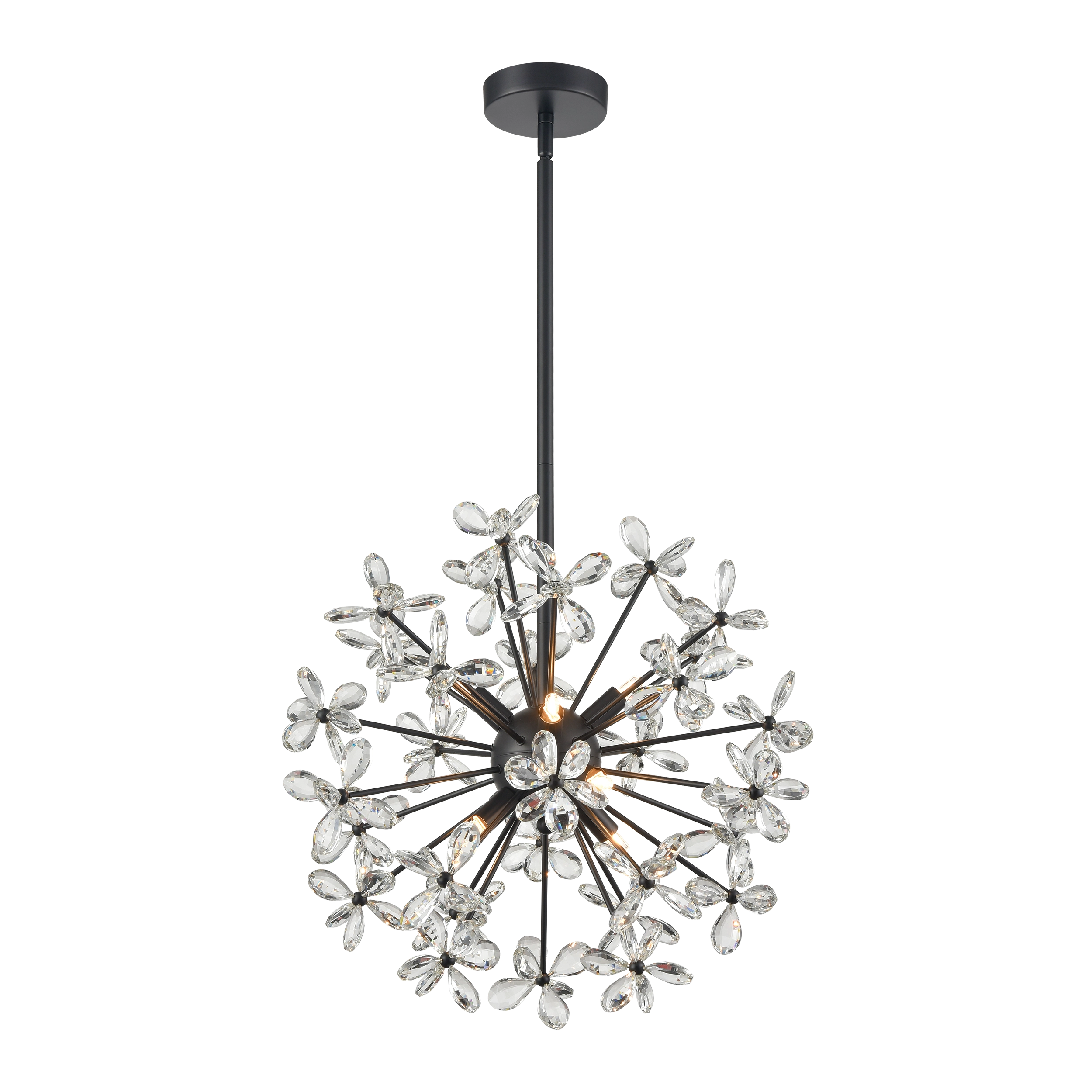 8-Light Floral Crystal Pedal Sputnik Matte Black Pendant Light.