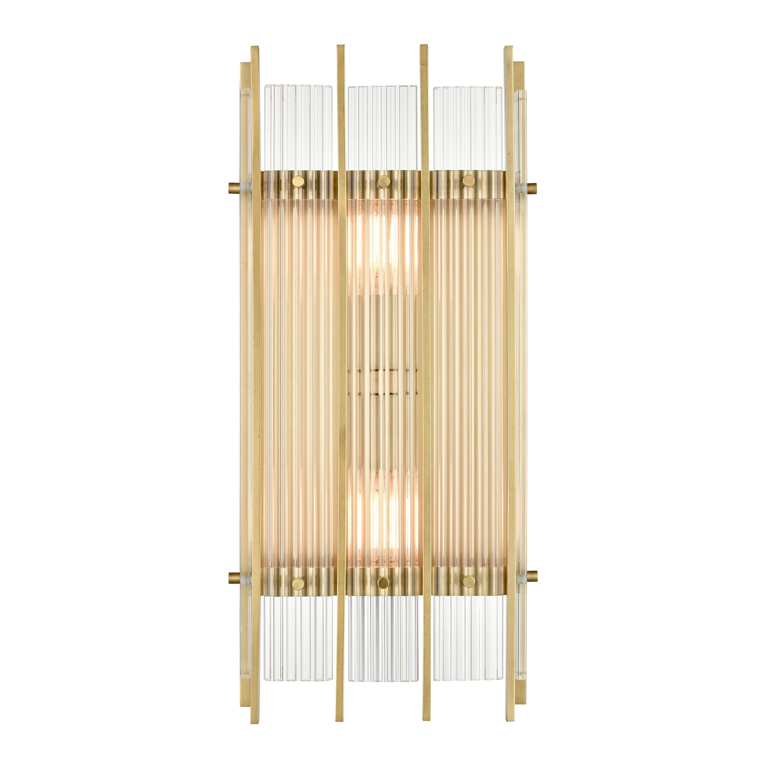 2-Light Fluted Glass Panel Aged Brass Vertical Wall Sconce.