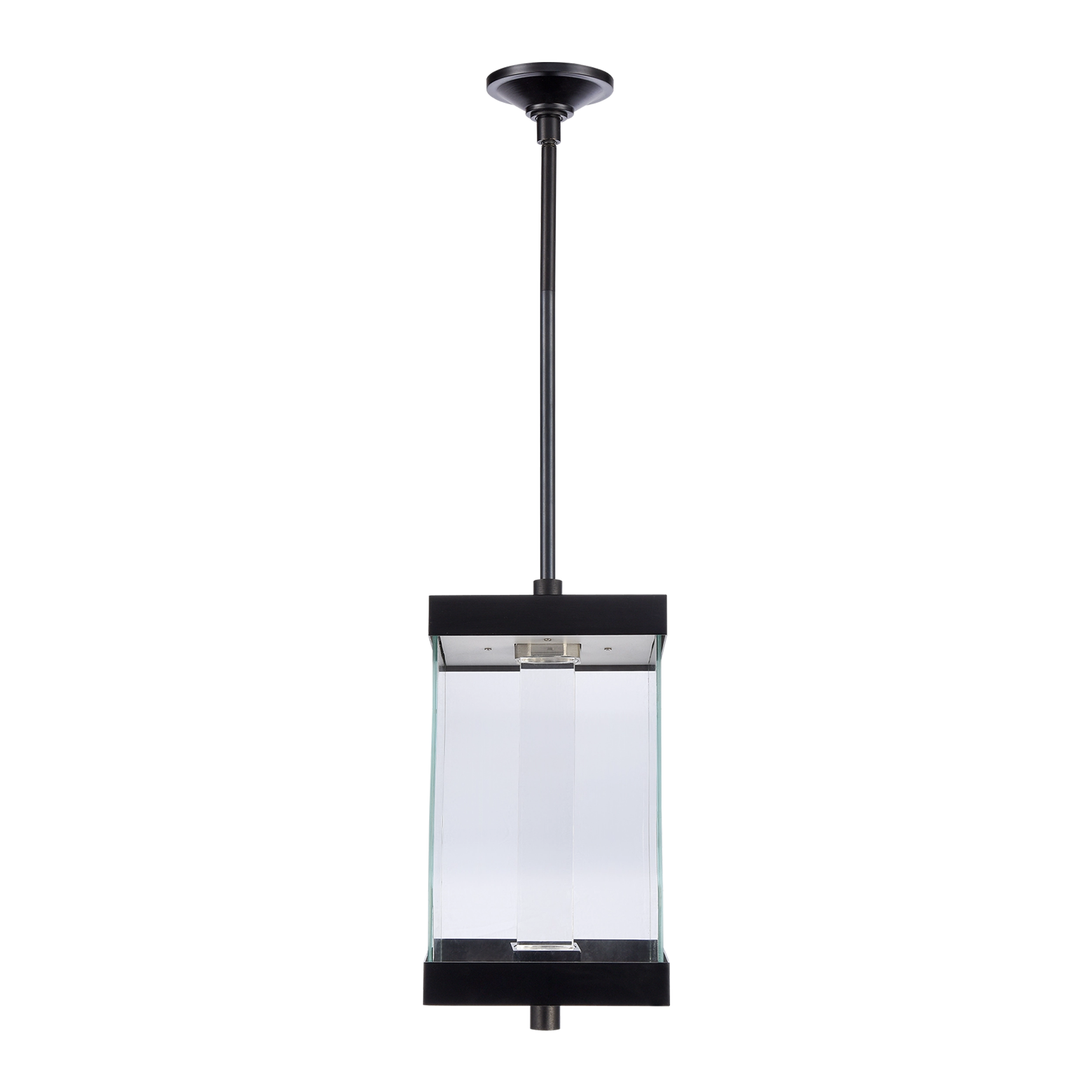 Modern 12" 2-Light Exterior Square Glass Incased Crystal Pendant Light. Crystal Clear Fire Polished Acrylic Square Crystal. Refined metal details with our marine grade sleek satin brushed black finish. Equipped with a 3 way switch to showcase the crystal or glass on only or both on together, with our powerful LED technology which is easily replaceable and 5CCT 2700K, 3000K, 3500K, 4000K, 5000K.
