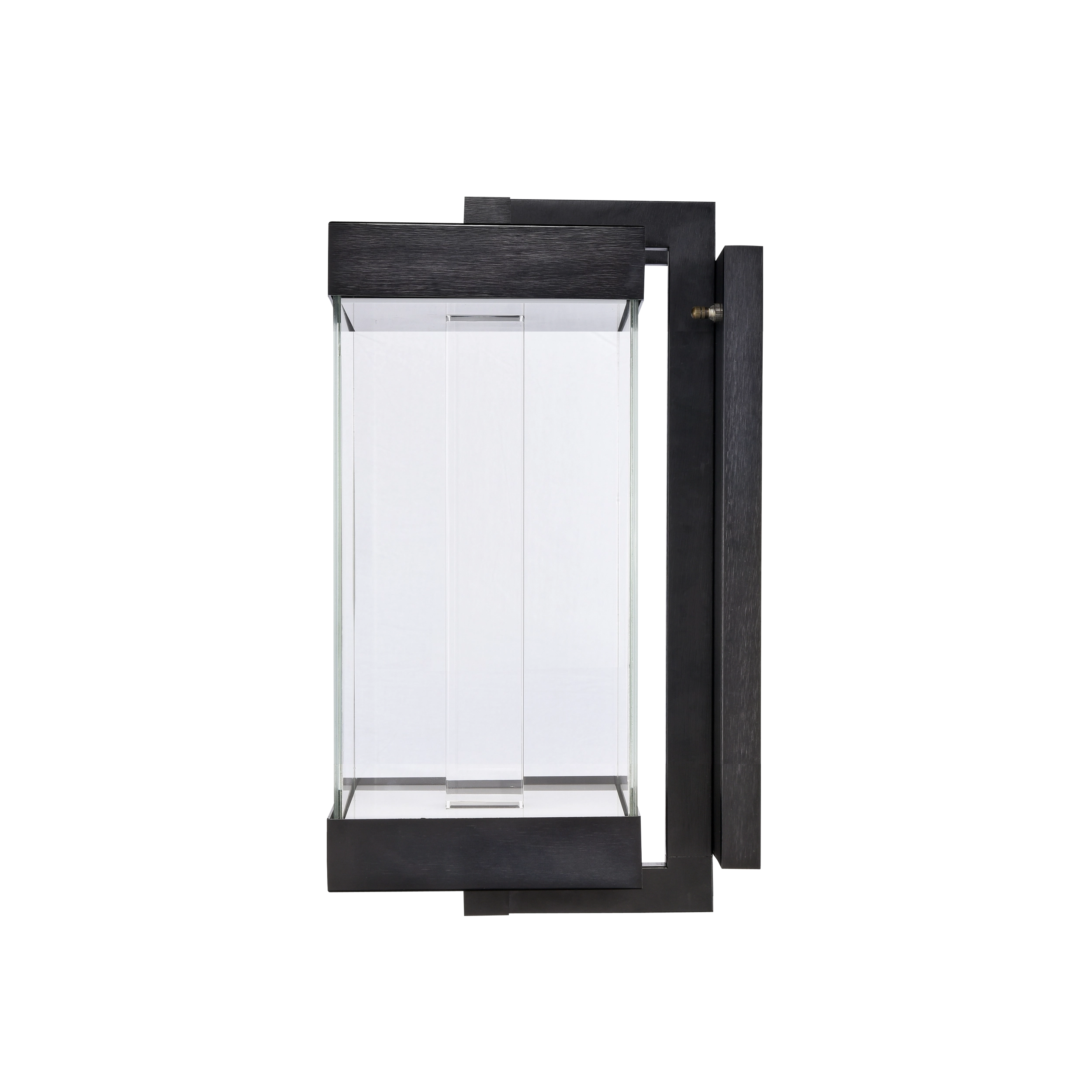 Modern 12" 4-Light Exterior Square Glass Incased Crystal Wall Sconce. Crystal Clear Fire Polished Acrylic Square Crystal. Refined metal details with our marine grade sleek satin brushed black finish. Equipped with a 3 way switch to showcase the crystal or glass on only or both on together, with our powerful LED technology which is easily replaceable and 5CCT 2700K, 3000K, 3500K, 4000K, 5000K.
