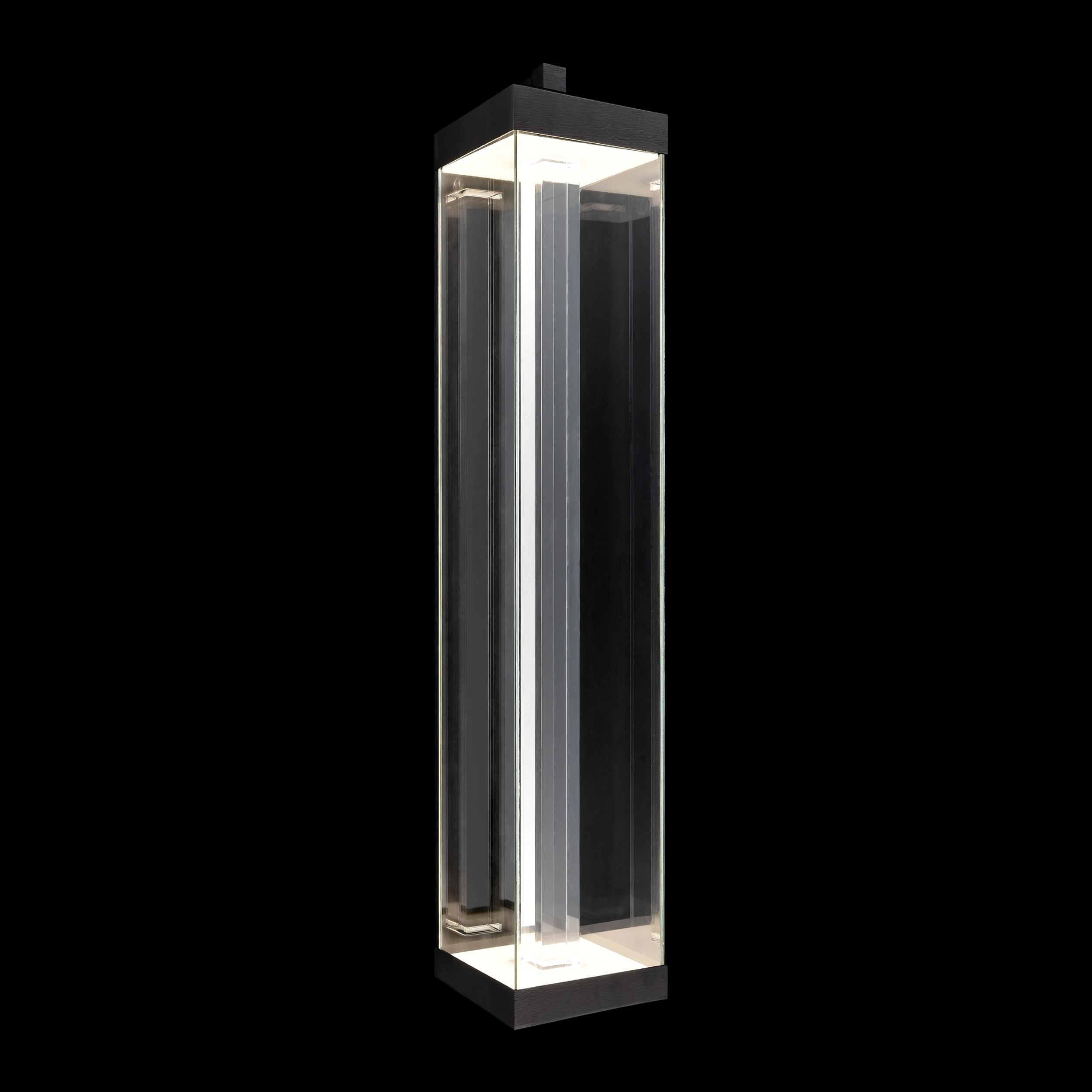 Modern 50" 4-Light Exterior Square Glass Incased Crystal Wall Sconce. Crystal Clear Fire Polished Acrylic Square Crystal. Refined metal details with our marine grade sleek satin brushed black finish. Equipped with a 3 way switch to showcase the crystal or glass on only or both on together, with our powerful LED technology which is easily replaceable and 5CCT 2700K, 3000K, 3500K, 4000K, 5000K.