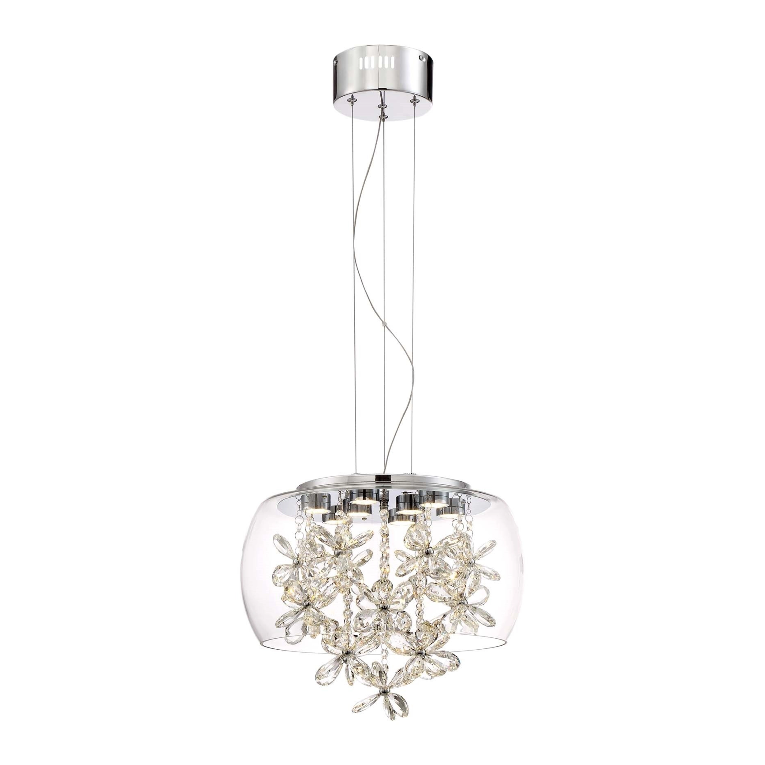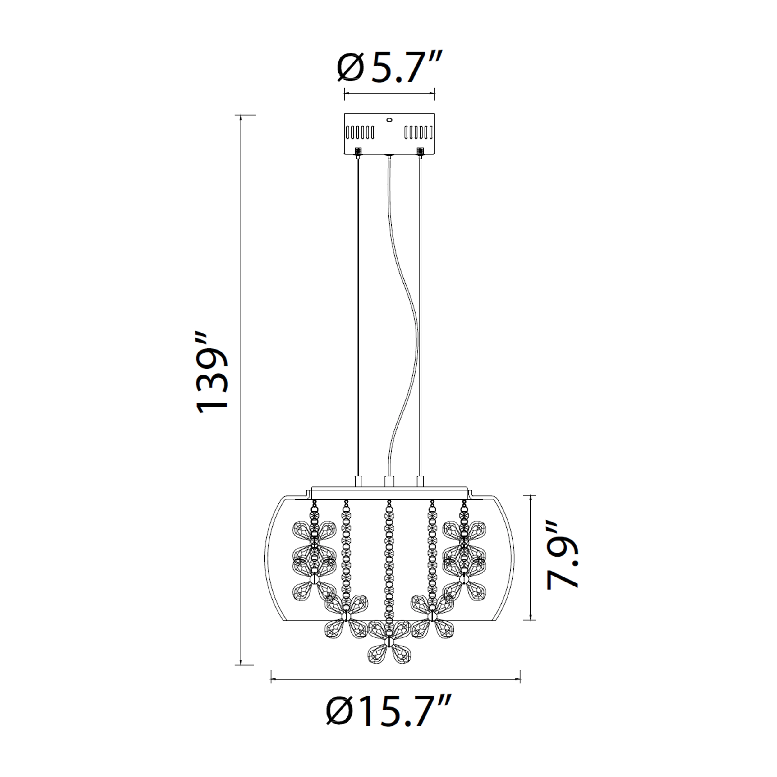 LED 16" Clear Glass Dome Shade with Clear Butterfly Crystal Stranded Pendant Light.
