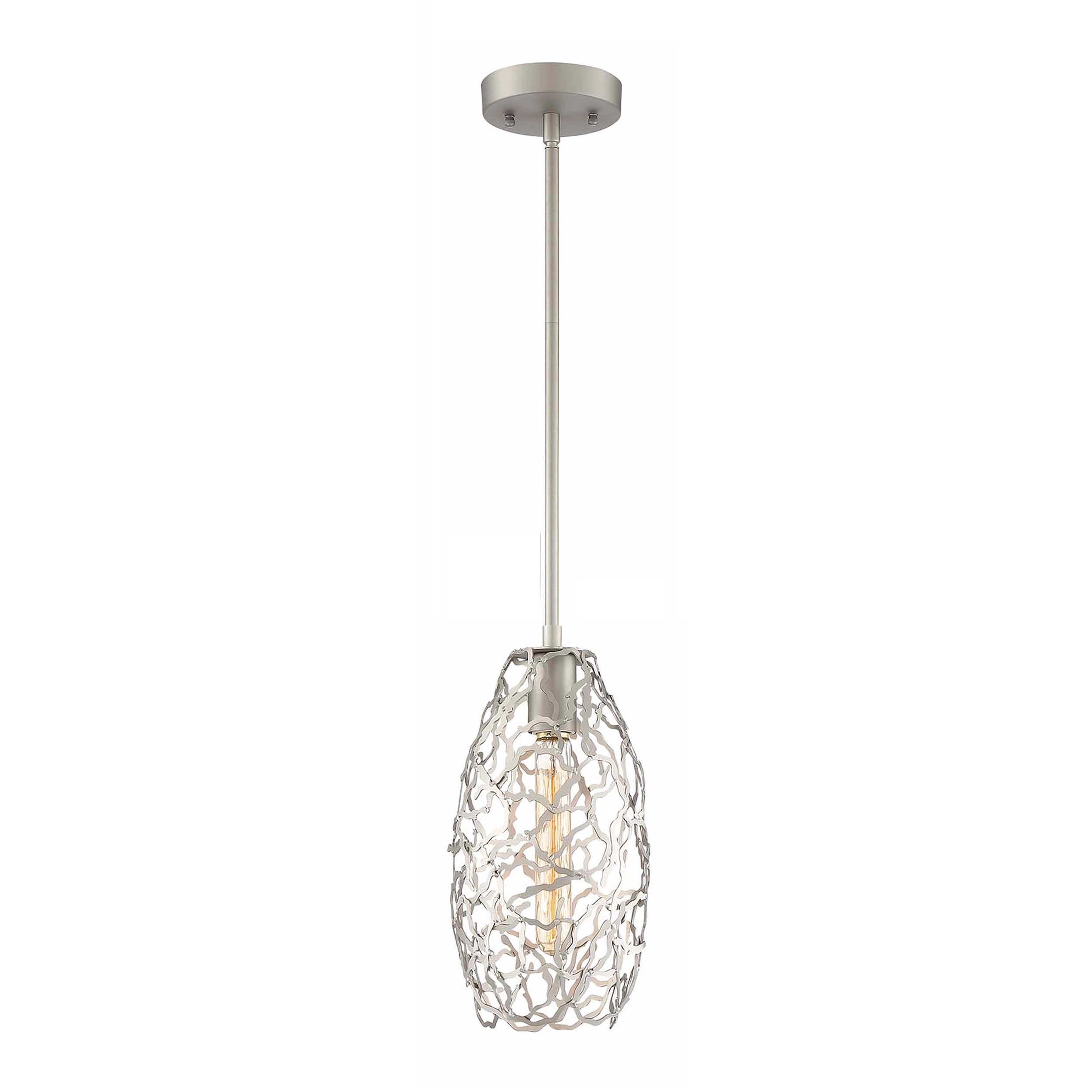 1-Light 6" Vertical Mini Pendant Light with Organic Metal Patterned Convex Shade and Satin Nickel Finish.