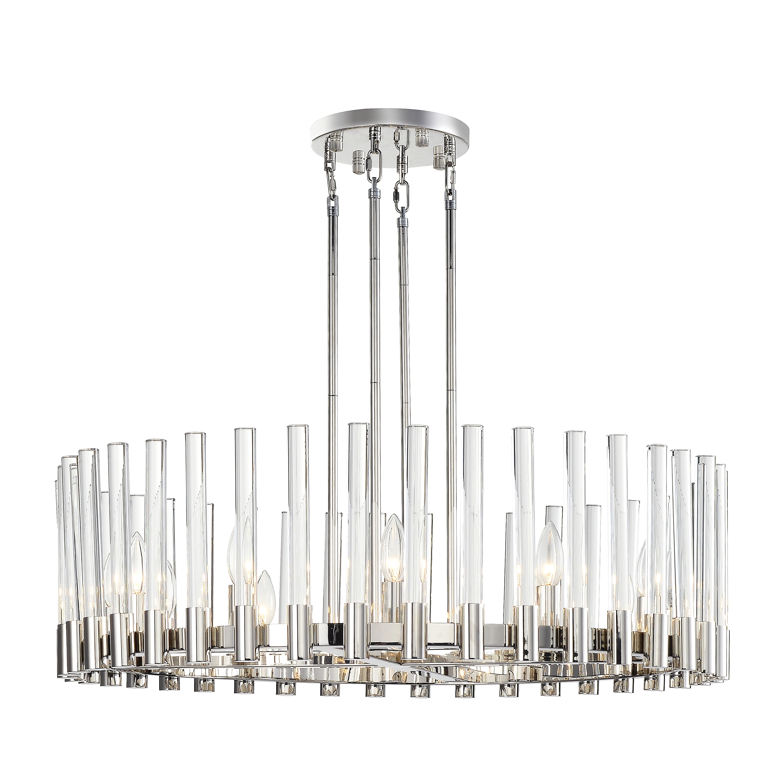 Julian 32″ 12-Light, Round Glass Stem Chandelier in Polished Nickel