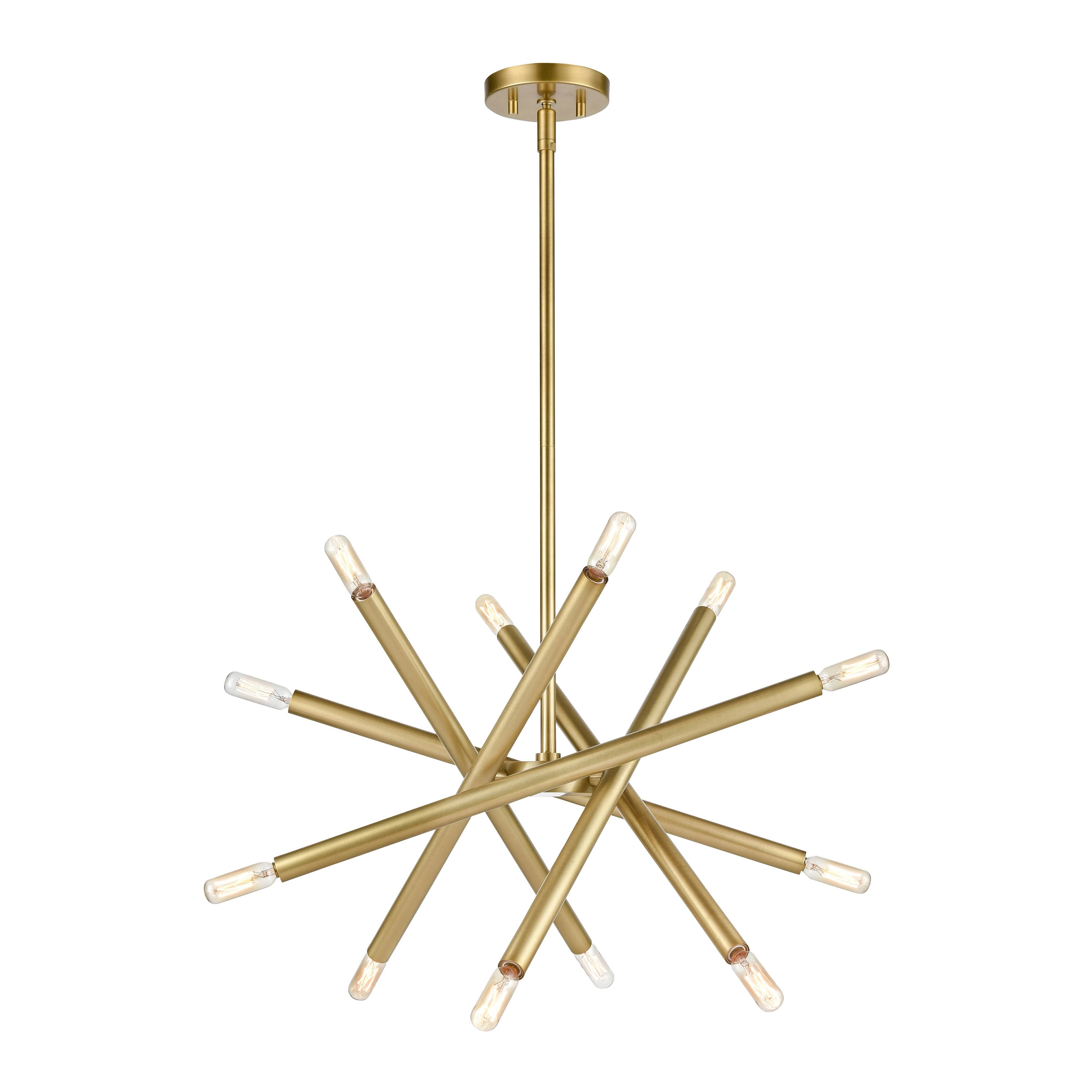 12-Light 21" Modern Sputnik Chandelier with Aged Brass Adjustable Cylinders and Metal Finish.