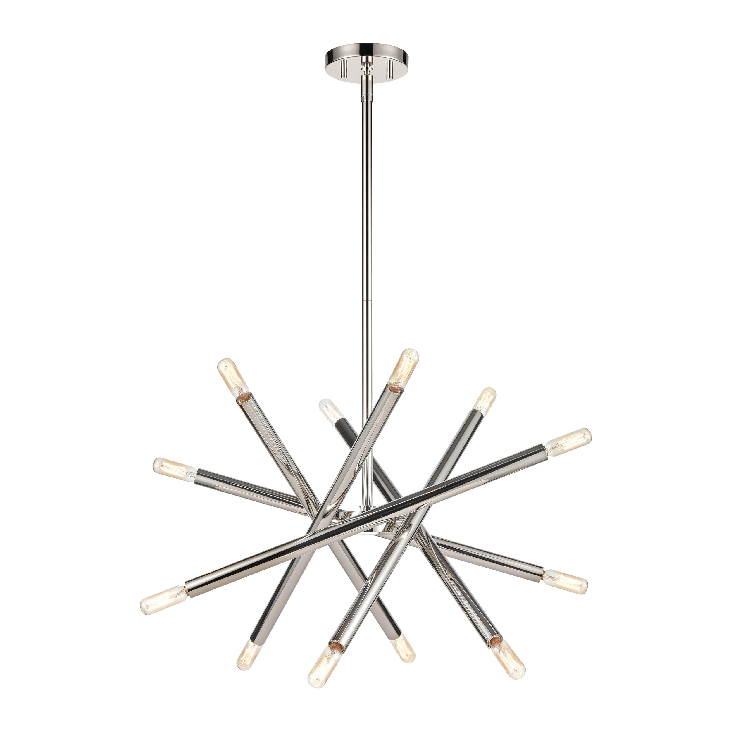 12-Light 21" Modern Sputnik Chandelier with Polished Nickel Adjustable Cylinders and Metal Finish.