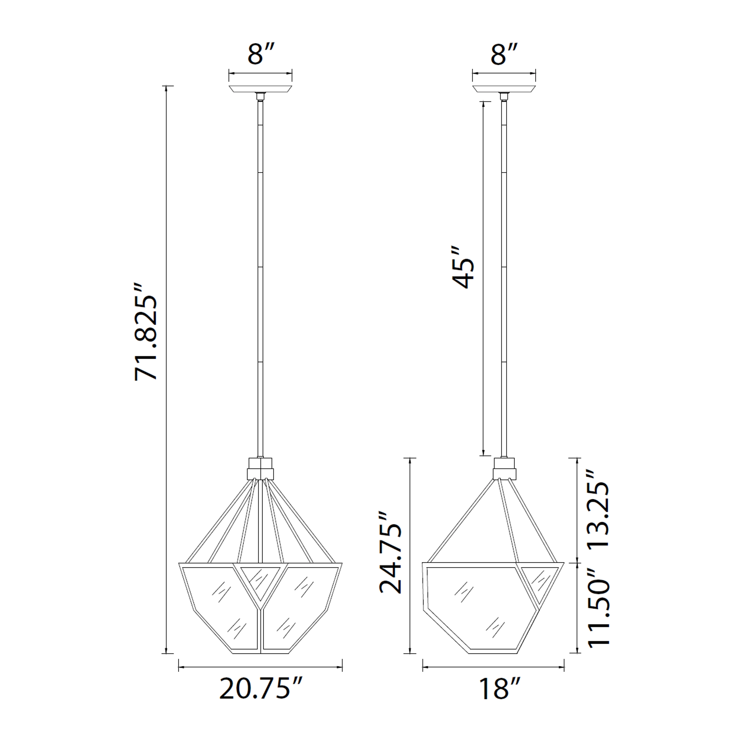 | Pendant Only | L-20.75" x W-18" x H-24.75" | Weight | 27 lbs |