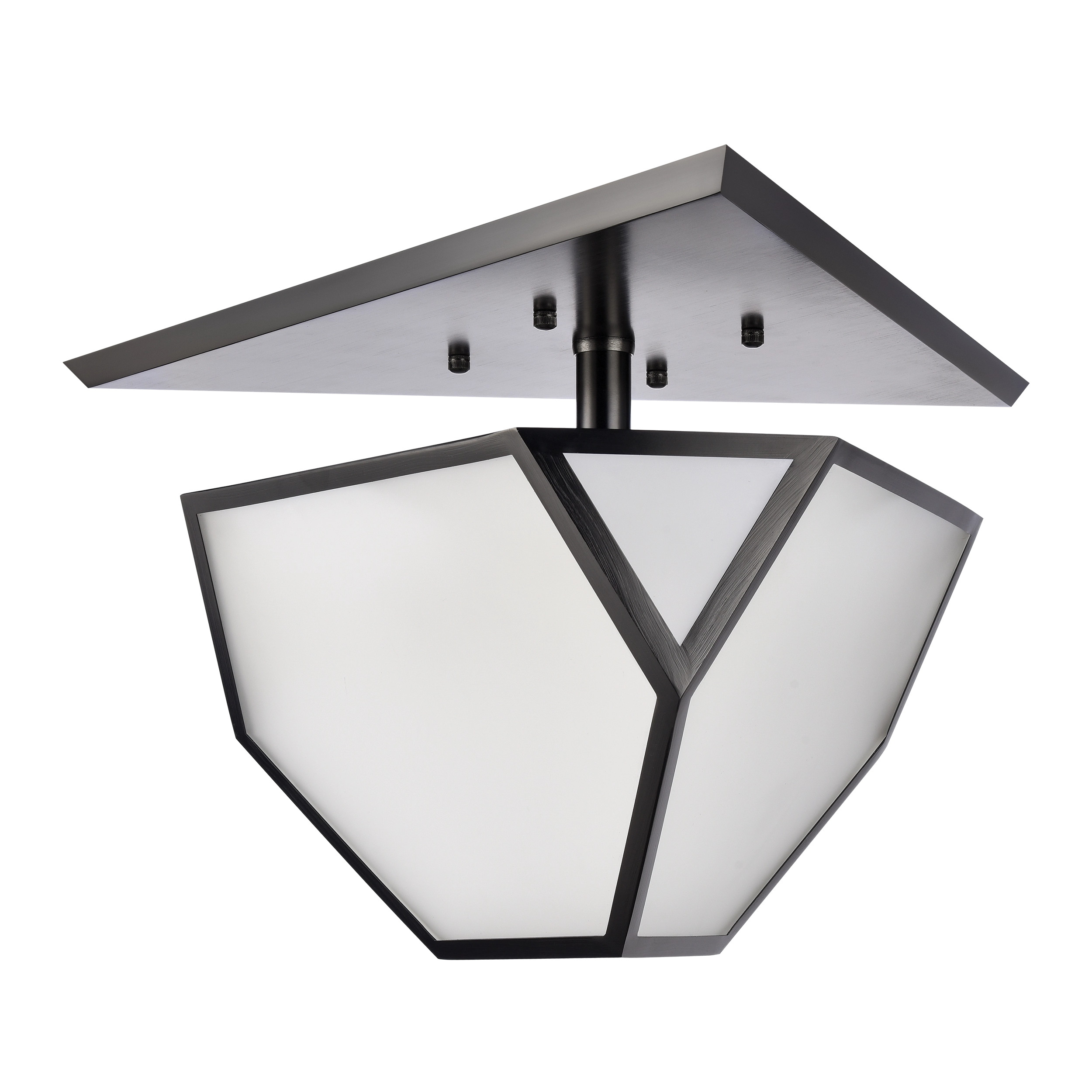 3-Light 21" Architectural Semi-Flush Mount with Clear Glass & Frosted Glass Panels Included and Satin Brushed Black Metal Finish.