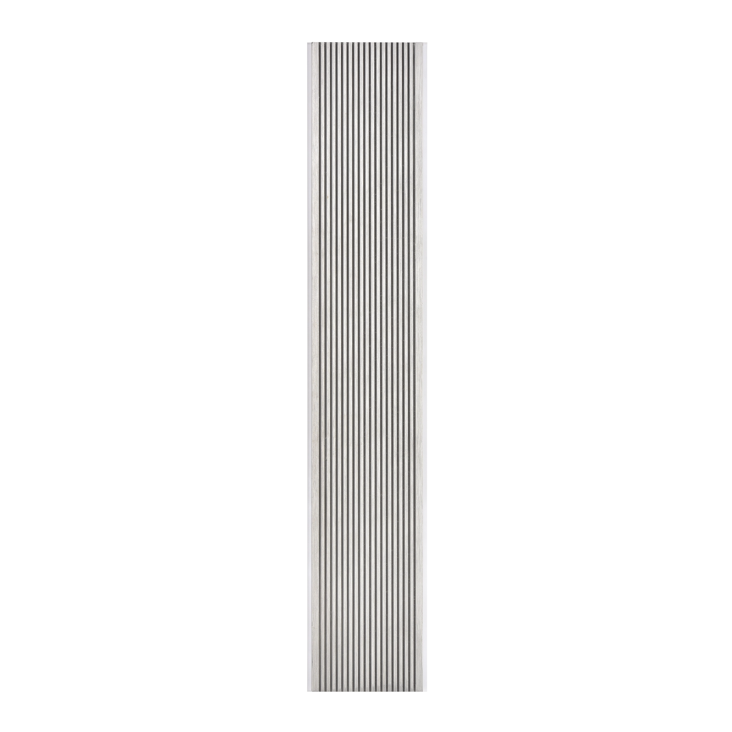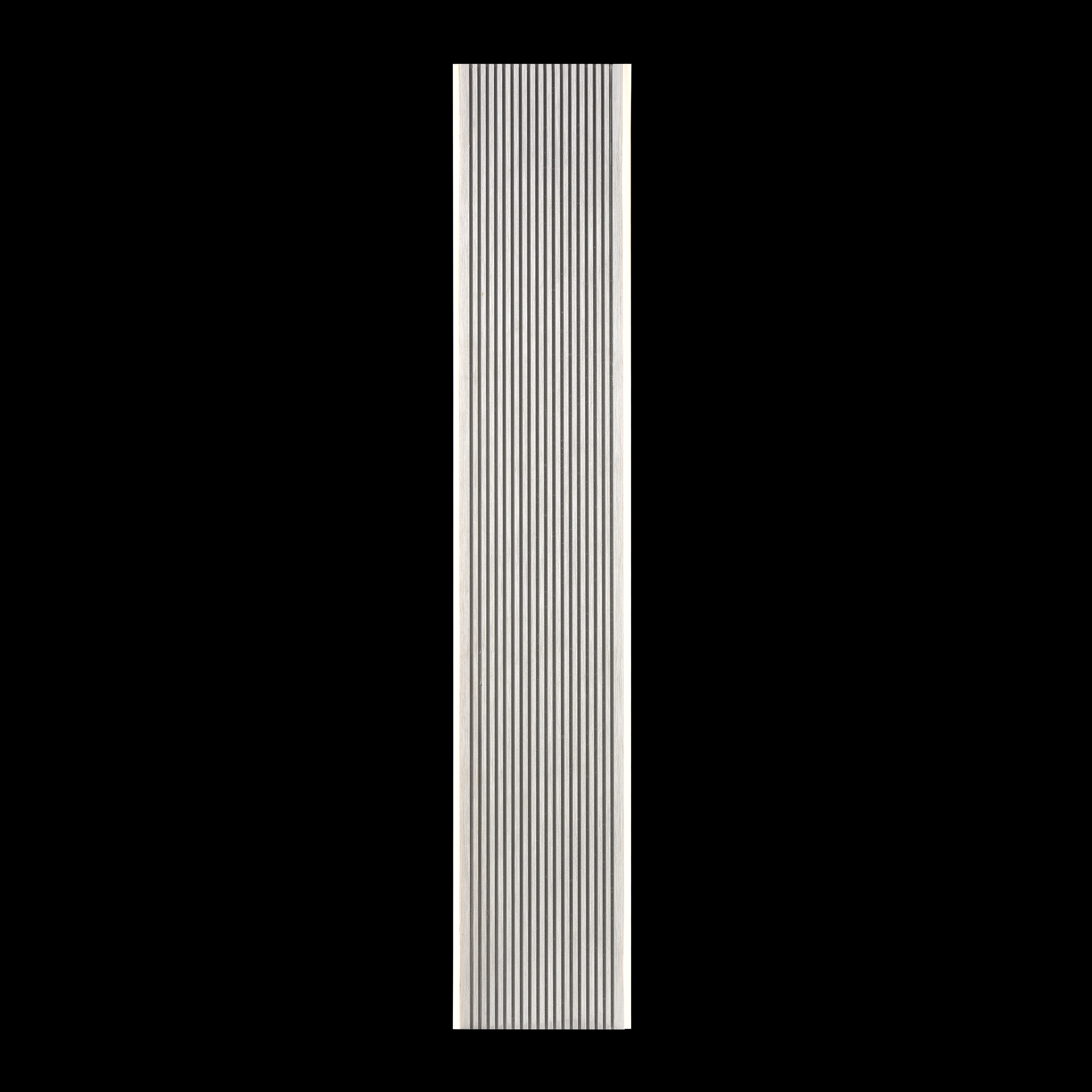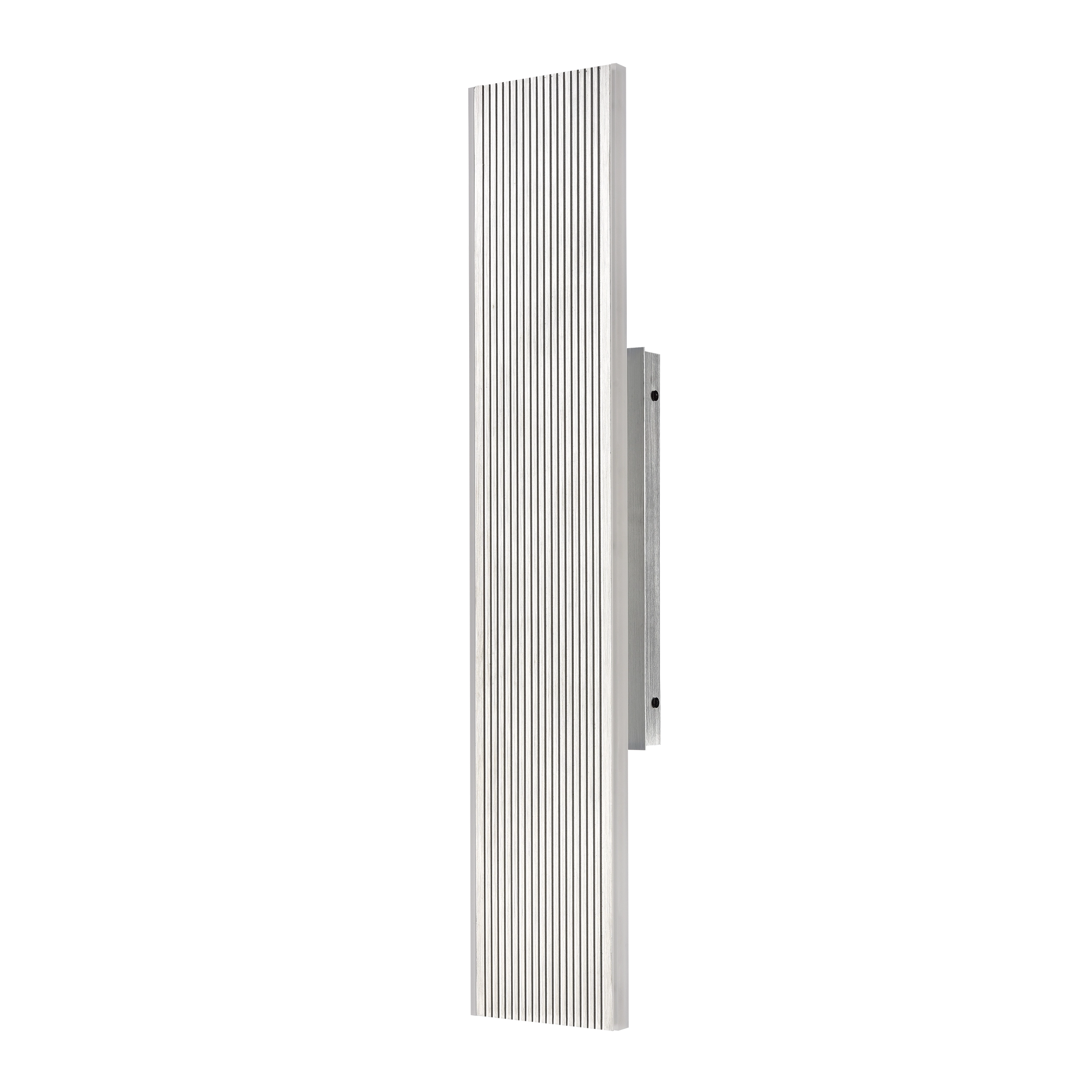 Ultra sleek and wide 28" all-terior marine grade LED wall sconce. Architectural vertical incisions within the aluminum frame provide a unique texture to these fixtures. With our slatted brushed aluminum marine grade finish with matte black groves. Integrated replaceable dimmable LED 3CCT 3000K, 3500K, 4000K.