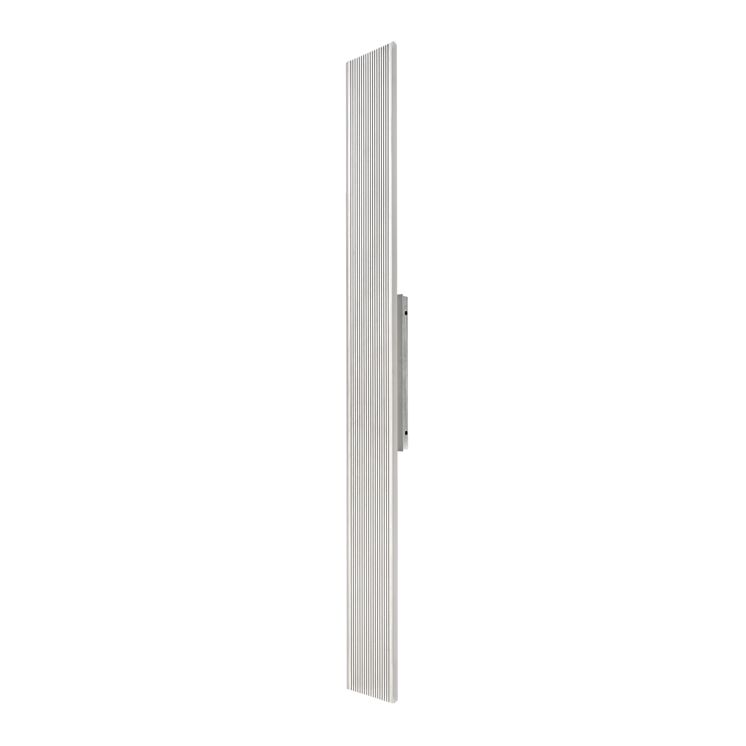 Ultra sleek and wide 47" all-terior marine grade LED wall sconce. Architectural vertical incisions within the aluminum frame provide a unique texture to these fixtures. With our slatted brushed aluminum marine grade finish with matte black groves. Integrated replaceable dimmable LED 3CCT 3000K, 3500K, 4000K.