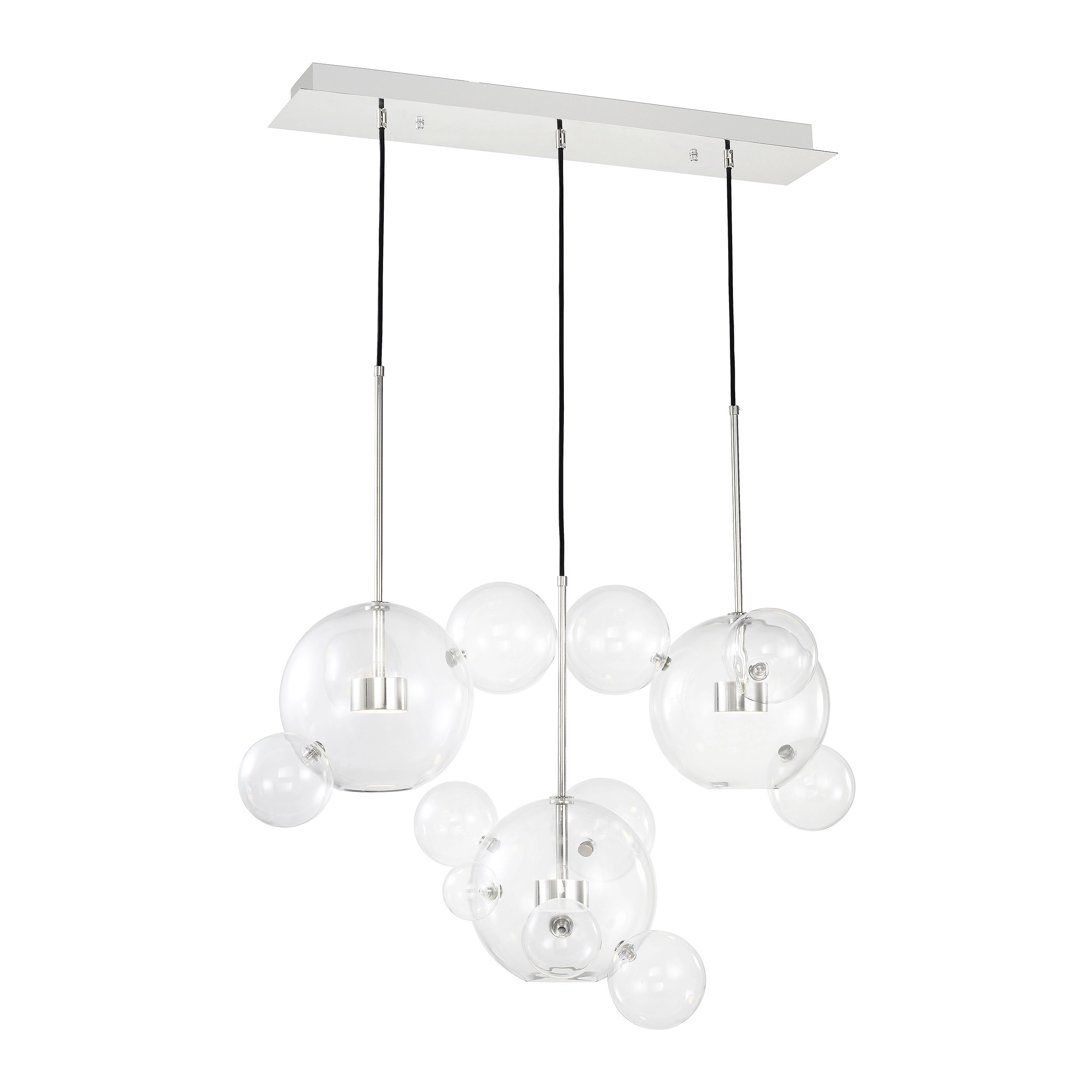 6-Light LED 45" Linear Glass Multi-Pendant with Clear Glass Globes with Variety of Arrangements, Polished Nickel Metal Finish and Replicable Integrated LED.