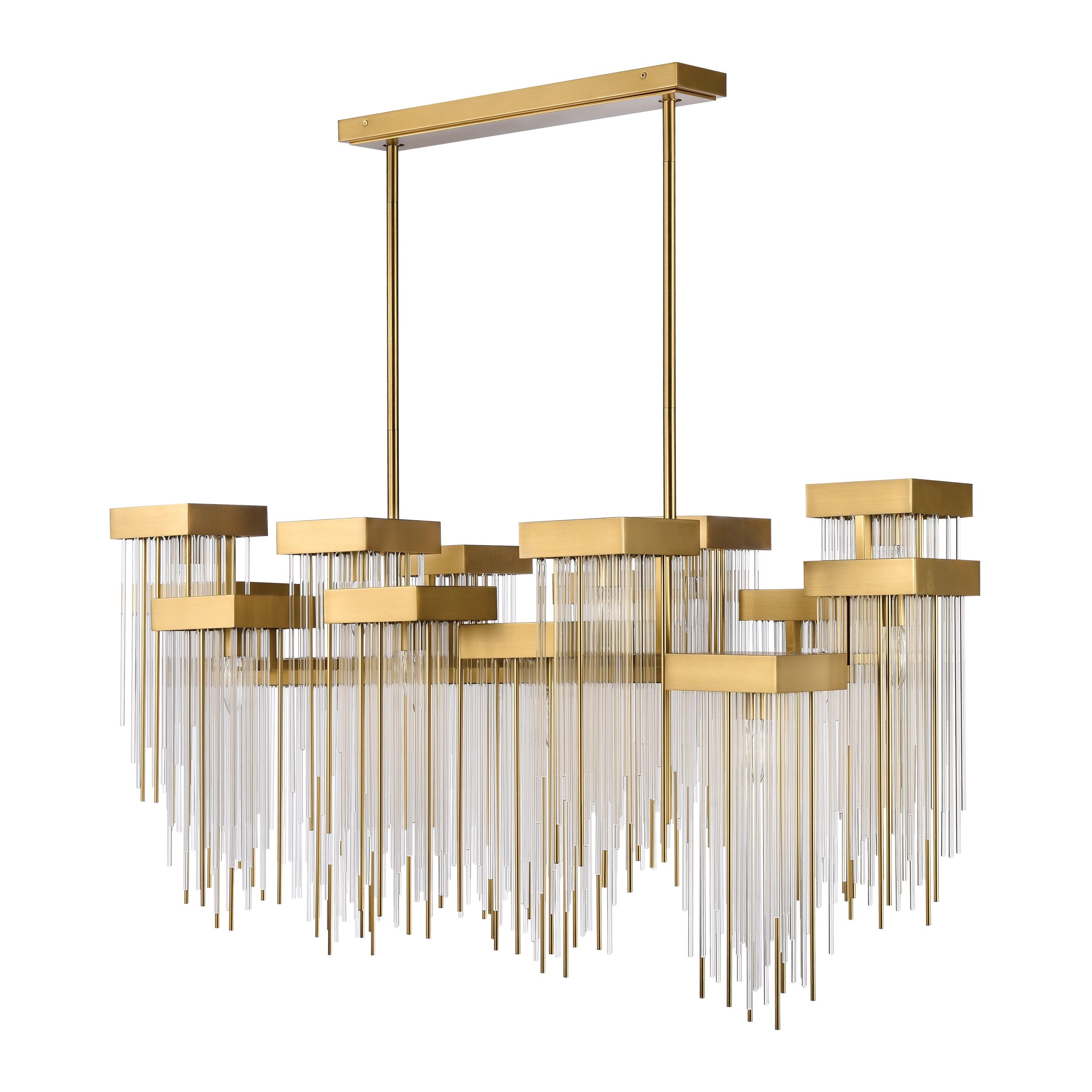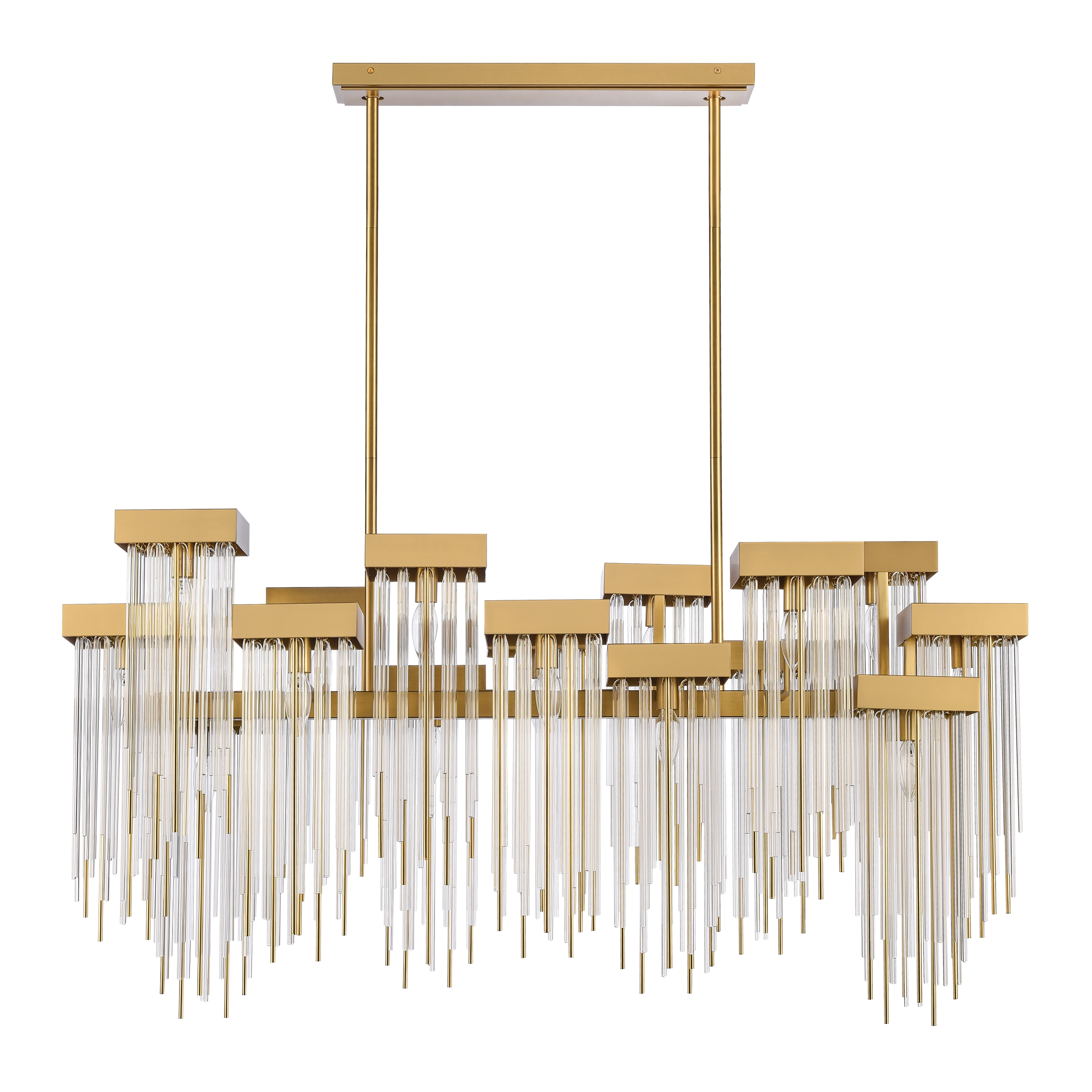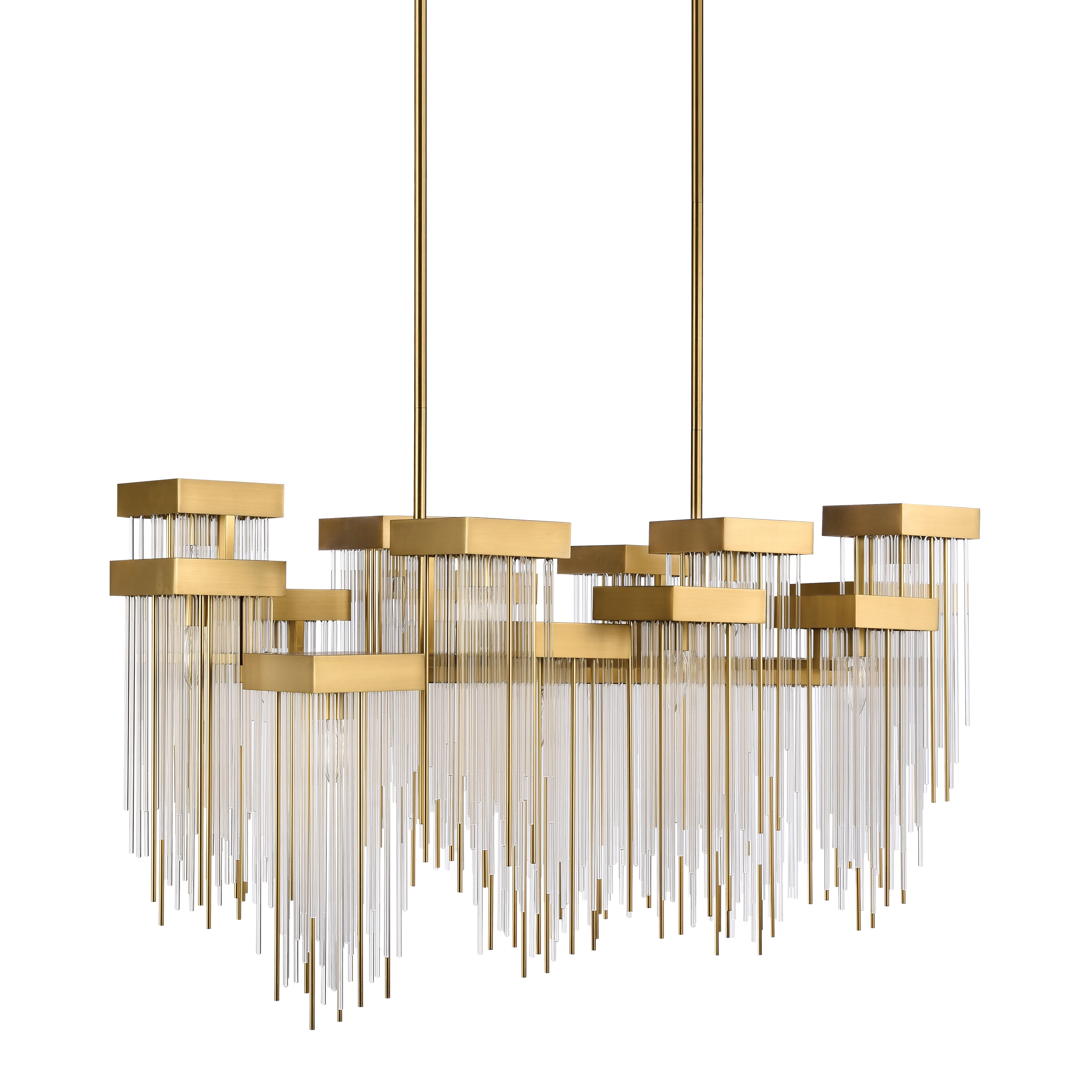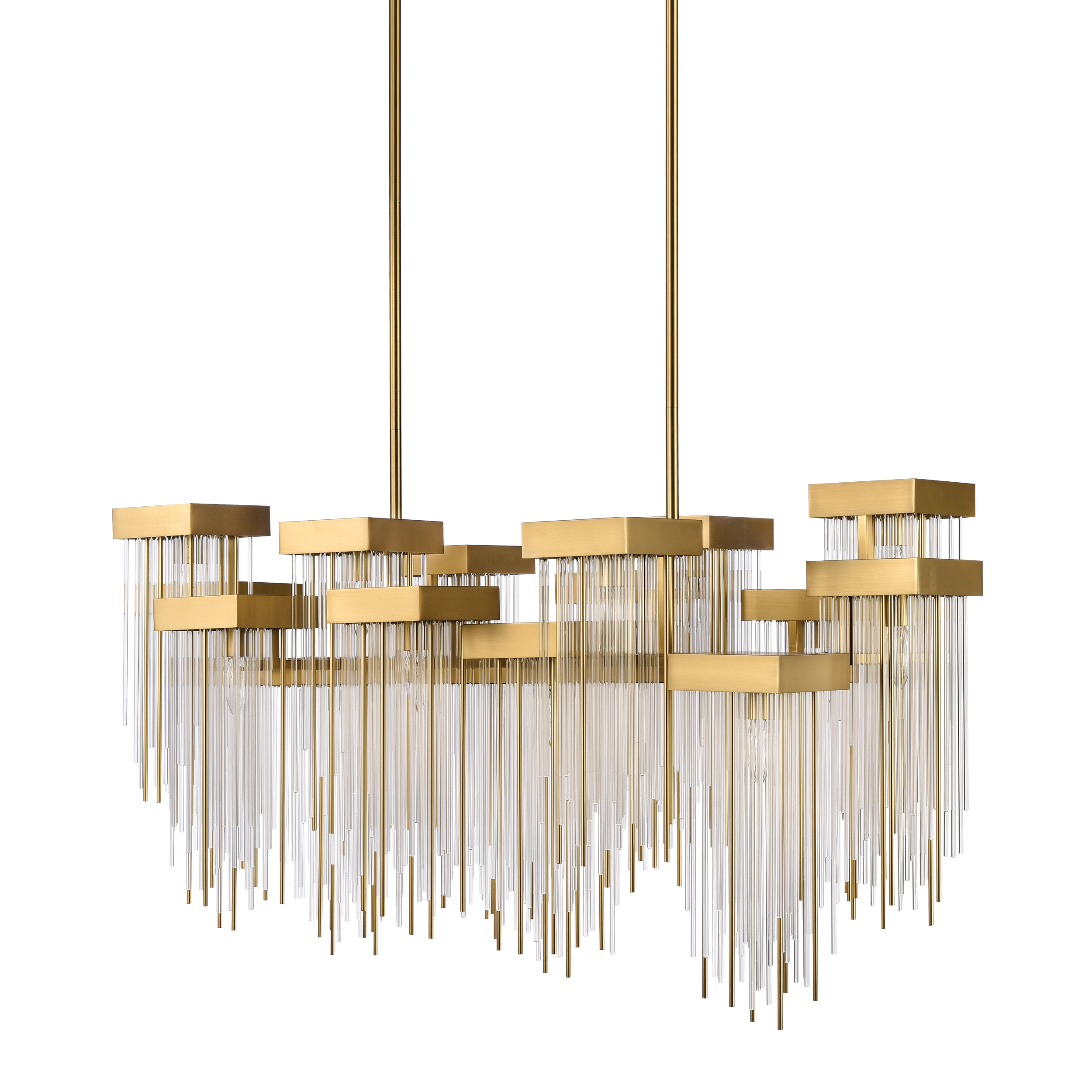 Waterfall 49″ 16-Light, Cityscape Glass Chandelier in Aged Brass